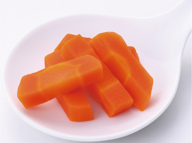 歯ぐきで噛めるぐらいのかたさが目安。1cm程度の角切りから始め、スティック状や乱切りなど、さまざまな形に挑戦してみるとよいでしょう。大人の食事といっしょに作り、食べやすいやわらかさや大きさ、薄味にすると効率的です。スプーンの練習のため、スープなどもメニューに加えると◎。味つけはバターや油のほか、ケチャップも使えるように。マヨネーズも使えますが、卵アレルギーに注意しましょう。
