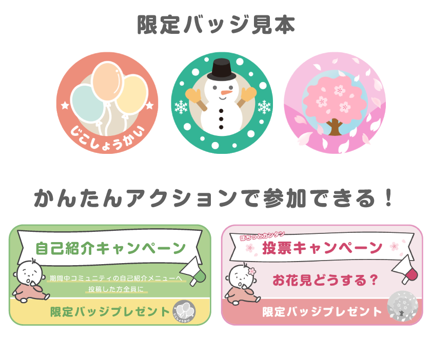 コミュニティサイト内で開催されるさまざまなキャンペーンに参加して、限定バッジをゲット!